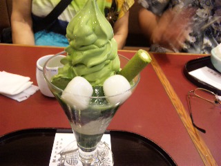 都路里の抹茶パフェ~ ヽ(´▽`)/ (あ、後ろは気にせんといてください。同行者の両親です・笑)